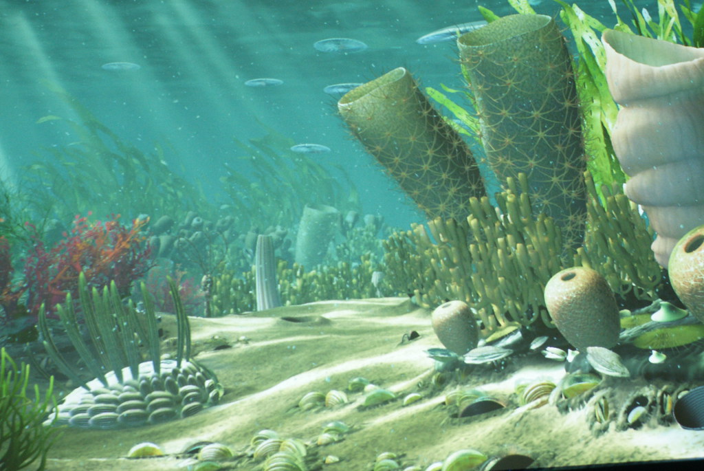 En els inicis del Paleozoic, els primers animals que s'observaven eren els anomenats trilobits, alguns vertebrats, mol·luscos i cordats. Així mateix hi ha esponges i braquiòpodes.